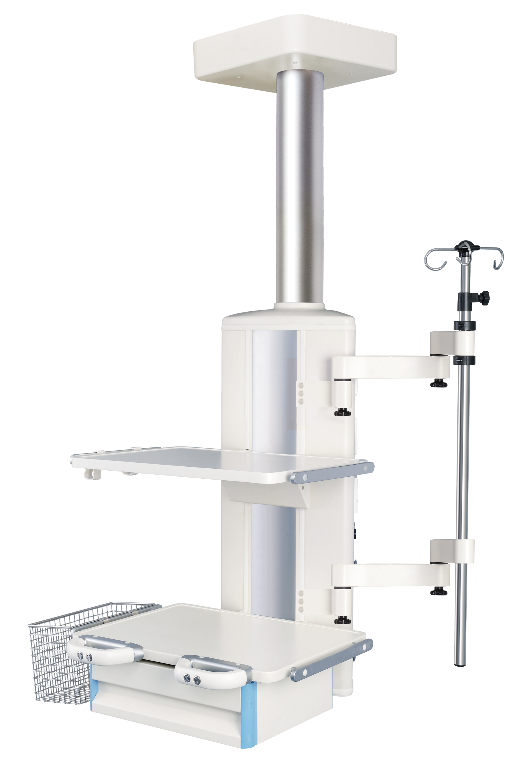 ICU 干濕分離旋臂吊橋 適用于醫(yī)院ICU病房,是現(xiàn)代重癥監(jiān)護病房必備的醫(yī)療搶救輔助設備,主要由橋架,干段和濕段組成。其特點在于合理的干濕分離結構,濕段配置升降靈活的輸液架和輸液泵架。干濕段配置有可升降調(diào)節(jié)的醫(yī)療監(jiān)護儀器平臺,在干濕段上分別將氧氣,空氣,吸引,強弱電,網(wǎng)絡輸入終端配置在醫(yī)護人員抬手可及的塔體上。濕段采用懸臂結構,提高了治療空間,移動旋轉部分采用氣控制動防飄移,桁架中央配置一款環(huán)保,節(jié)能的LED照明治療。為臨床治療提供了照明解決方案,另外還可根據(jù)您的要求選配通信傳呼,監(jiān)控,可視電話
